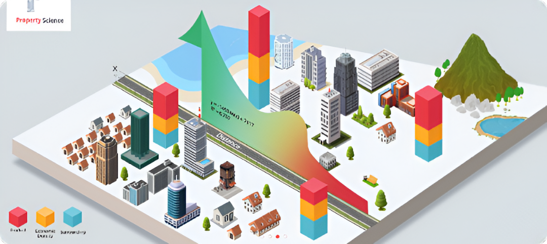 A multivariate regression model integrates these variables to predict property prices with high precision, capturing geospatial variations and product differentiation.